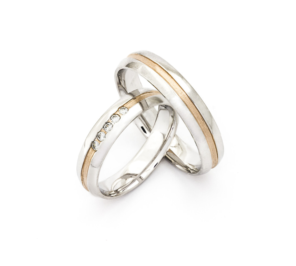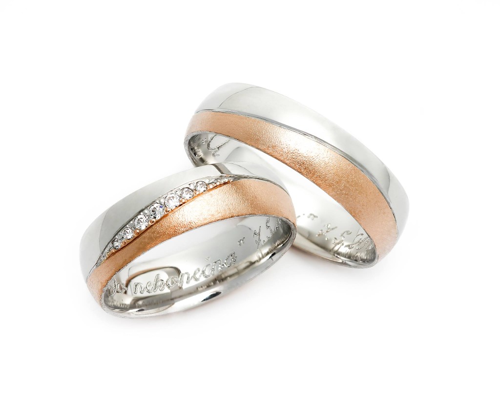 Nejste-li kategorickým zastáncem žlutého či bílého zlata, zvažte, zda si nevybrat dvoubarevné prsteny, když již samotné spojení dvou barevných kovů dodává šperkům na zajímavosti. Spojení dvou kovů různé barvy pro mnohé symbolizuje spojení dvou odlišných osob v jeden celek.